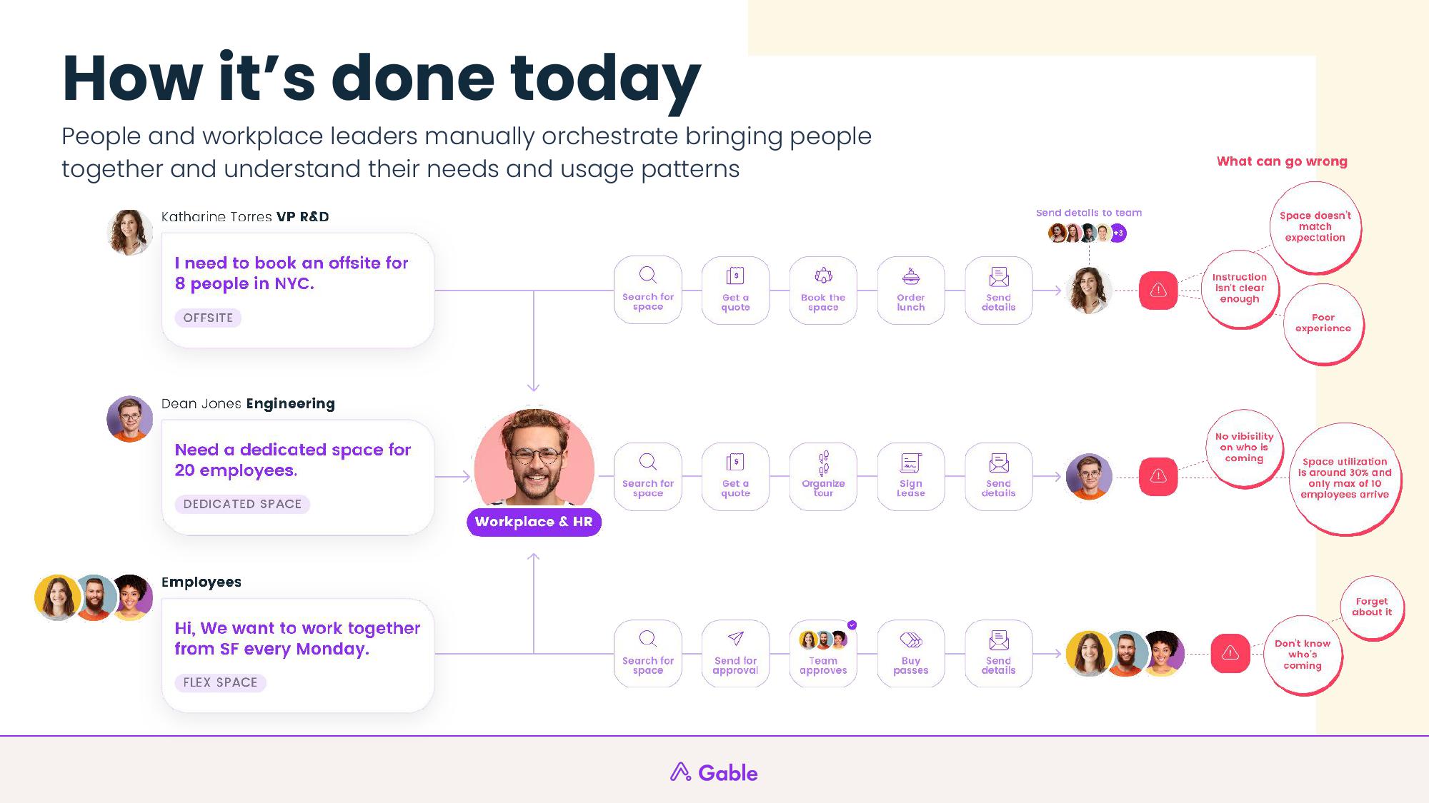 This pitch deck from Gable was used to support their $12 million Series A. Gable provides a centralized platform for companies to manage and book flexible workspaces, helping distributed and hybrid teams stay connected while giving employers visibility into costs and usage. The deck outlines the challenges of remote-first work, Gable’s asset-light solution, traction metrics, case studies, and a clear business model. It’s a strong example of how to position a SaaS platform within a fast-changing workplace landscape.