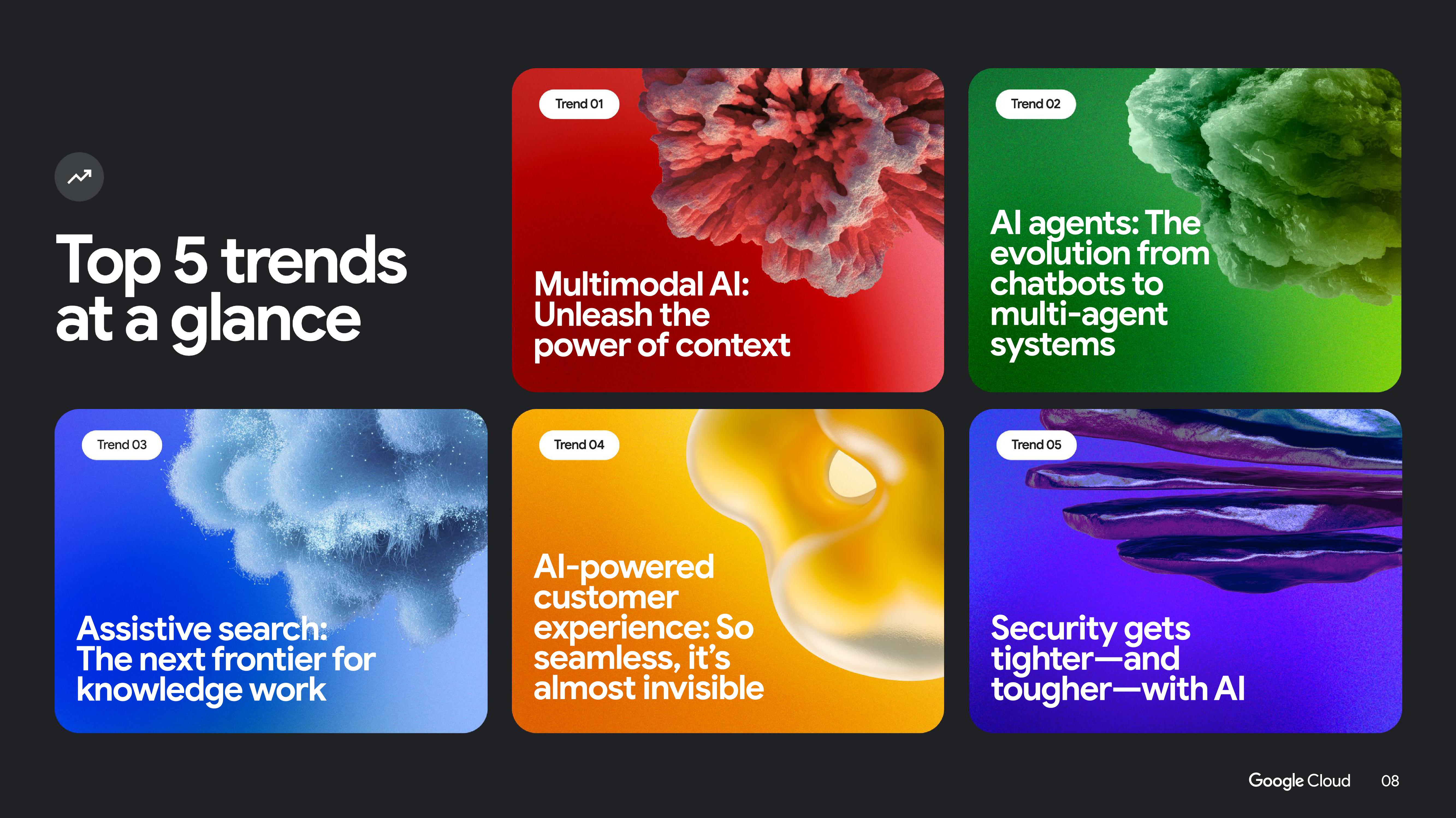 The Google Cloud AI Trends Report outlines five strategic shifts shaping enterprise AI in 2025, including multimodal AI, assistive search, seamless AI-powered customer experiences, advanced AI agents, and tighter security. Drawing on global research and insights, the report highlights how businesses can move from experimentation to large-scale adoption. Its clean, corporate design features structured layouts, bold infographics, and clear visual hierarchy—balancing technical depth with executive-level accessibility, making it both informative and polished for decision-makers.