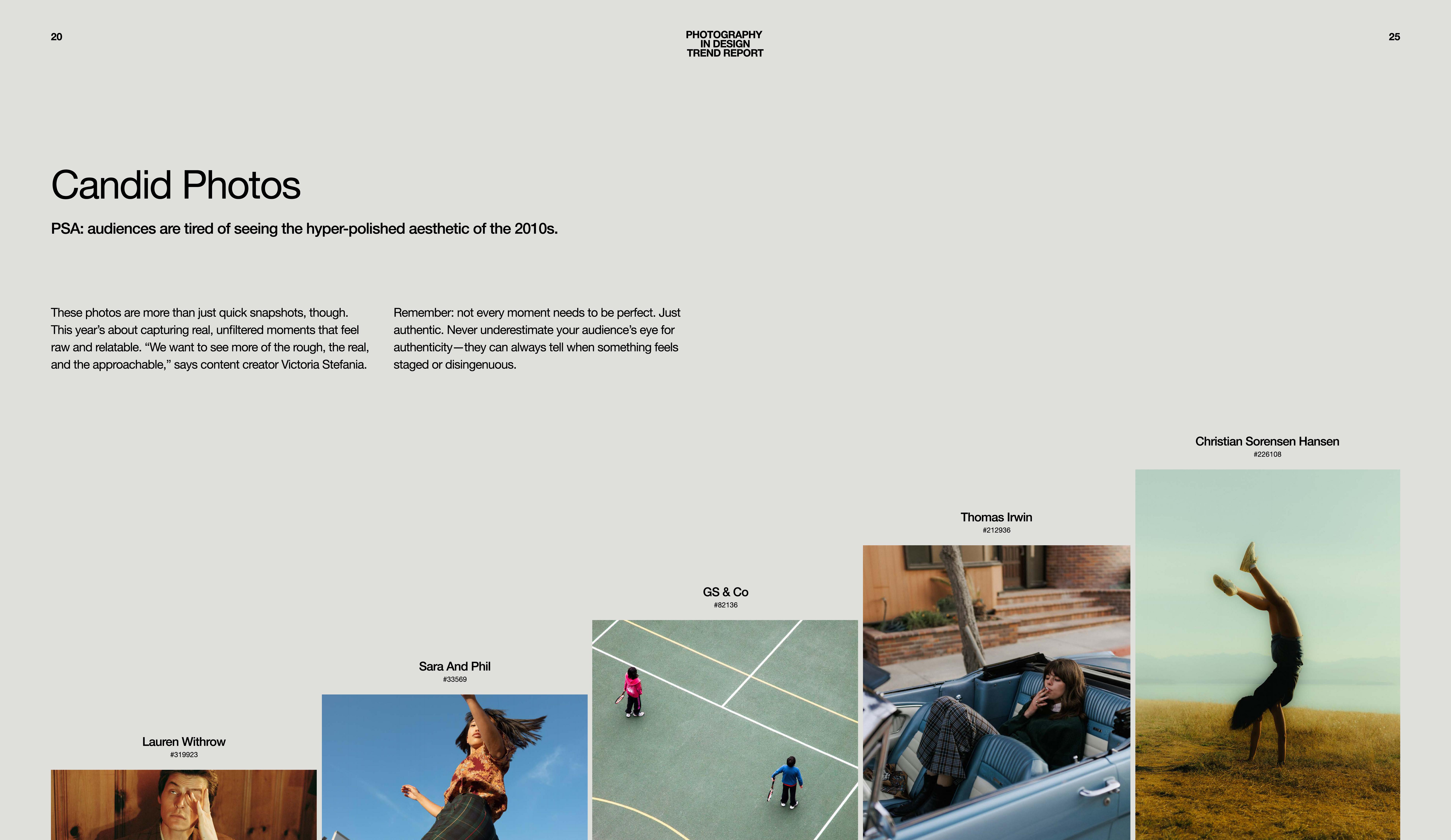 The 2025 Stills Photography in Design Trend Report explores the visual directions shaping creative work in the year ahead, highlighting how designers can cut through oversaturated content with imagery that feels authentic, raw, and emotionally resonant. Covering trends such as candid photography, abstract textures, dark imagery, high-flash Y2K aesthetics, JPEG artifacting, and collage-inspired visuals, the report provides inspiration and practical insights for brands and creatives looking to connect with audiences in fresh, relatable ways.